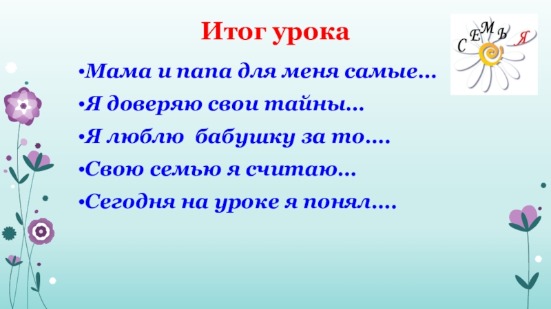 Семья-это маленький ковчег, призванный ограждать детей от беды. Это гнездо, в котором детей готовят ко времени самостоятельного полета.