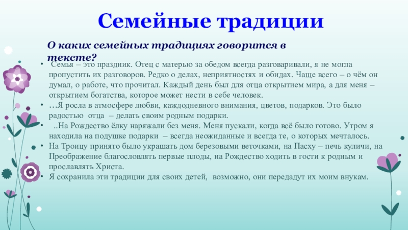 О каких семейных традициях говорится в тексте?