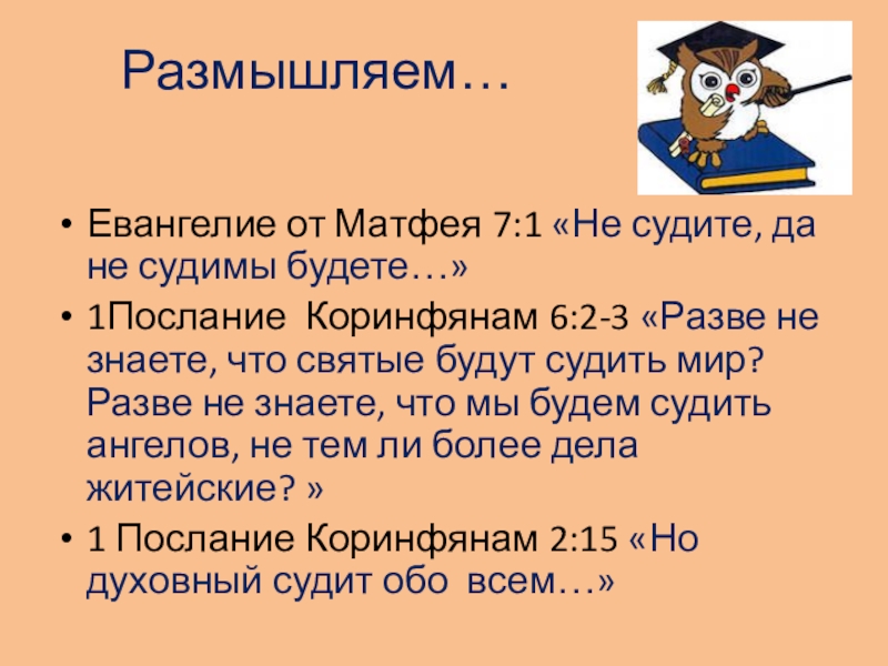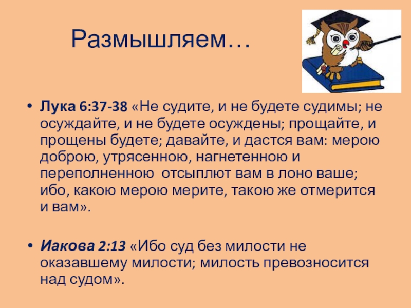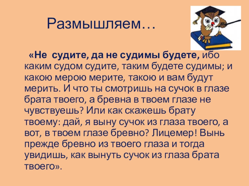 Не судите, да не судимы будете, ибо каким судом судите, таким будете судимы.