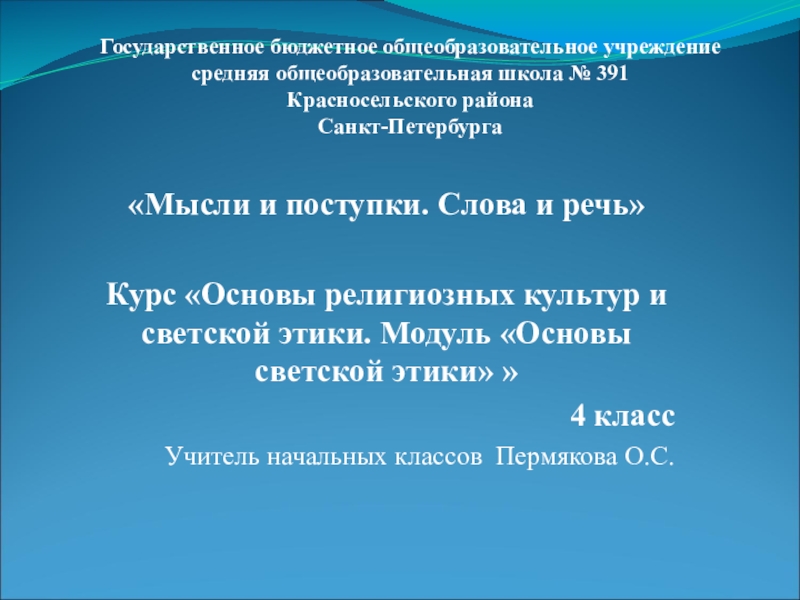 Курс «Основы религиозных культур и светской этики. Модуль «Основы светской этики» »