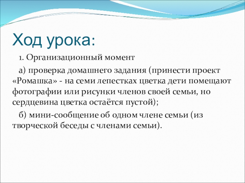 б) мини-сообщение об одном члене семьи (из творческой беседы с членами семьи).