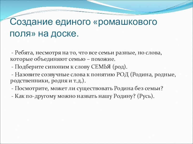 - Назовите созвучные слова к понятию РОД (Родина, родные, родственники, родня и т.д.).