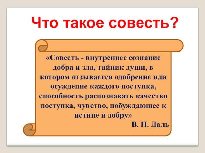 «Совесть - внутреннее сознание добра и зла, тайник души,