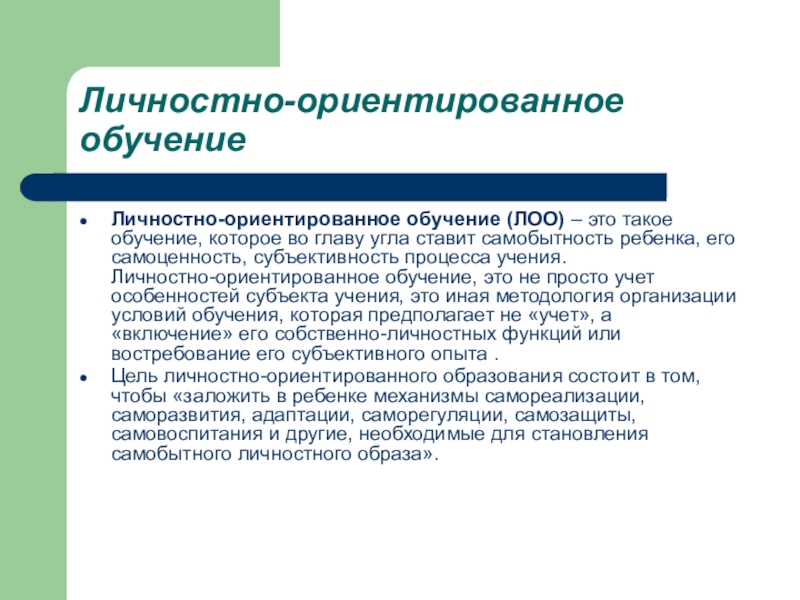 Личностно-ориентированное обучение (ЛОО) – это такое обучение, которое во главу