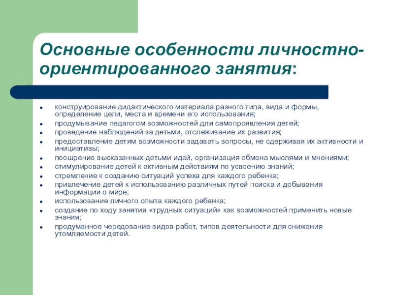 Слайд 17Основные особенности личностно-ориентированного занятия: