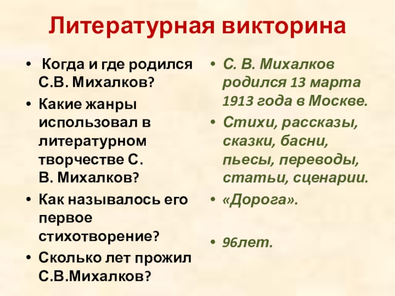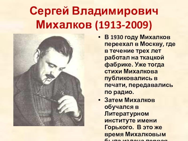 С. В. Михалков родился 13 марта 1913 года в Москве.