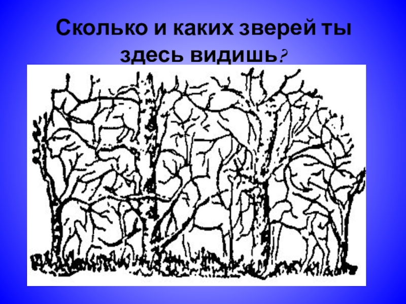 Слайд 12Сколько и каких зверей ты здесь видишь?
