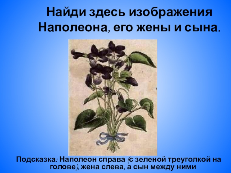 Слайд 8Найди здесь изображения Наполеона, его жены и сына.