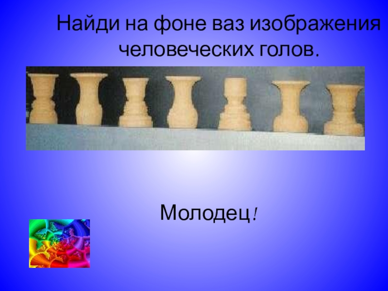Слайд 14Найди на фоне ваз изображения человеческих голов.