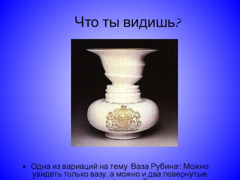 из вариаций на тему "Ваза Рубина". Можно увидеть только вазу, а можно и два повернутые друг к другу профиля по бокам вазы.