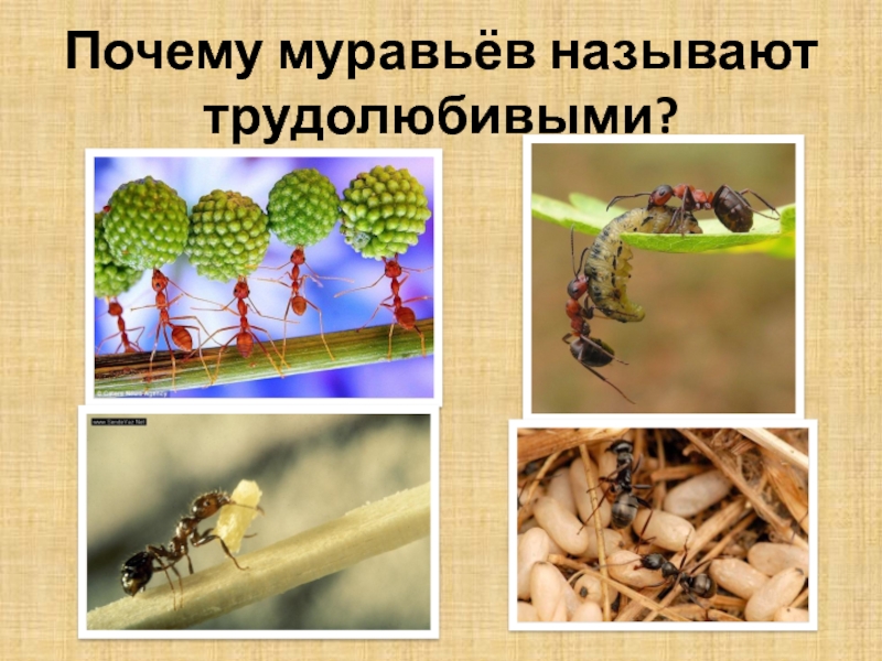 Слайд 7Почему муравьёв называют трудолюбивыми?