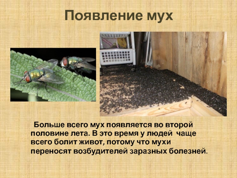 время у людей чаще всего болит живот, потому что мухи переносят возбудителей заразных болезней.