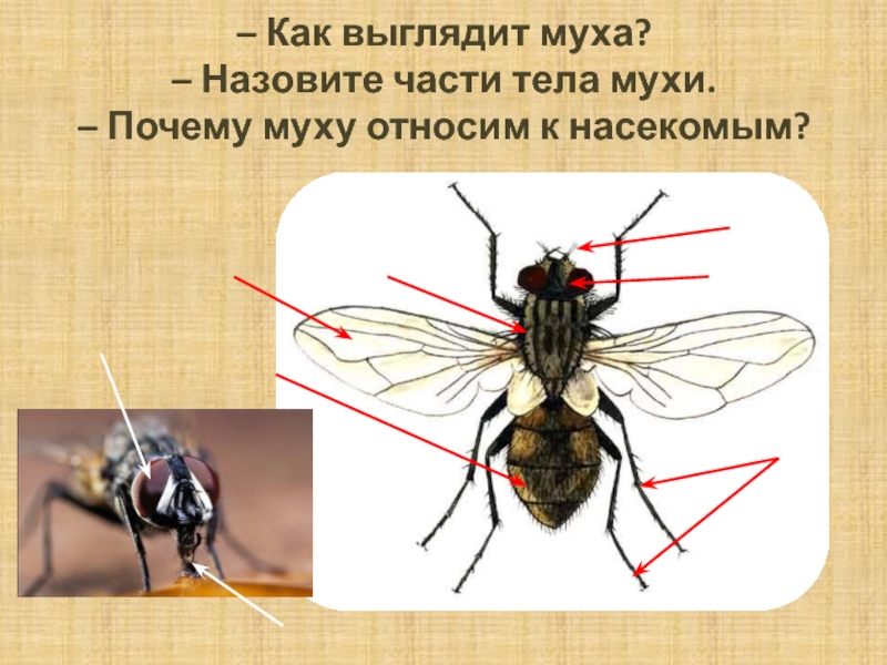 Слайд 16 При помощи цепких коготков и липких подушечек на лапках муха может