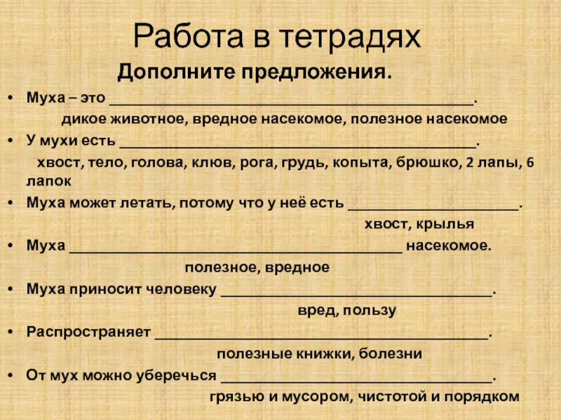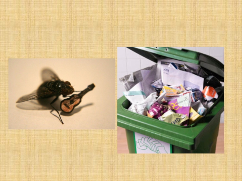 Слайд 20Мухи загрязняют пищевые продукты и посуду своими испражнениями . На щетинках