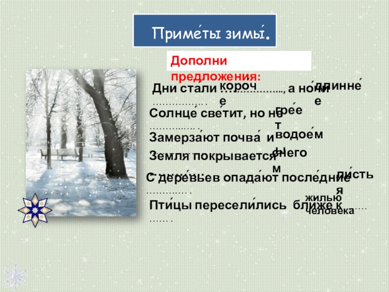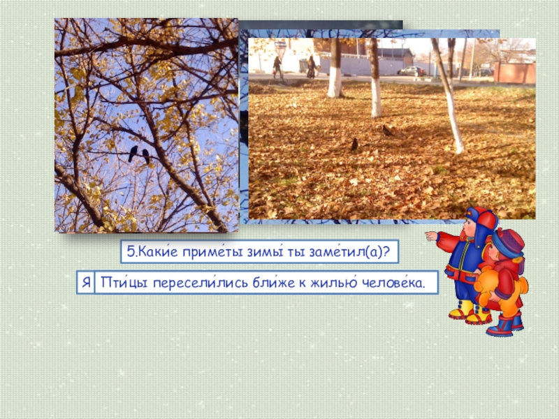 5.Каки́е приме́ты зимы́ ты заме́тил(а)?