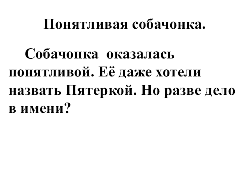Вскоре оказалось, что Двойка очень хорошая и понятливая собачонка. Её даже хотели назвать Пятеркой. Но разве дело в имени?