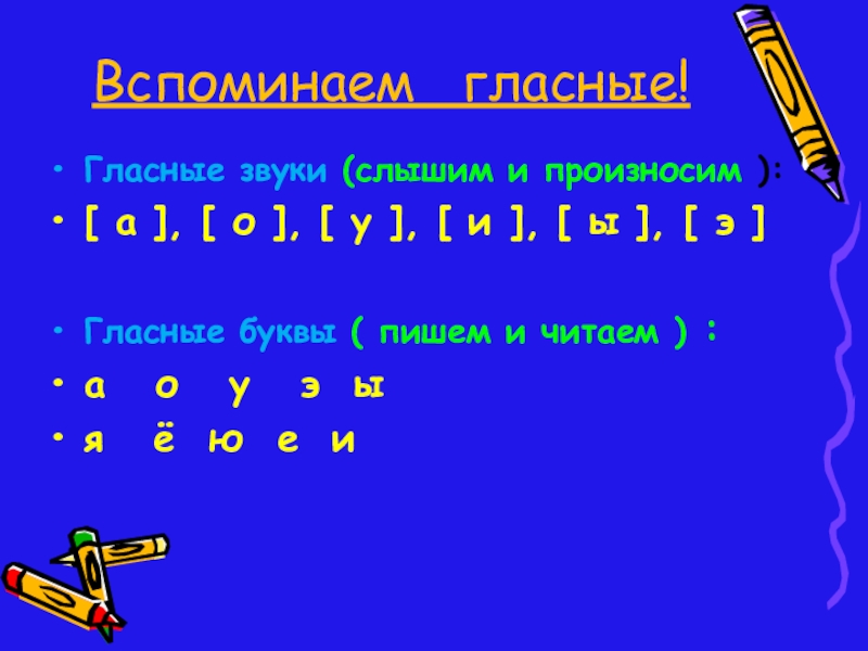 о ], [ у ], [ и ], [ ы ], [ э ]