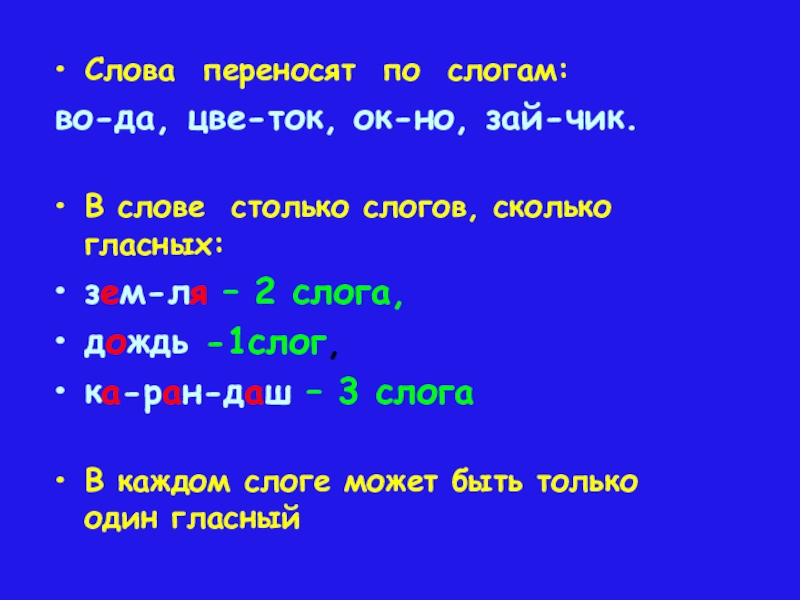 2) Слог из одной буквы переносить или оставлять на строке нельзя: урок, Юля