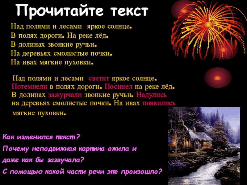 Назови знакомые части речи, которые использует автор.