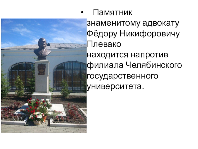 Слайд 7ПАМЯТНИК ОСНОВАТЕЛЮ ГОРОДА ТРОИЦКА ИВАНУ ИВАНОВИЧУ НЕПЛЮЕВУ