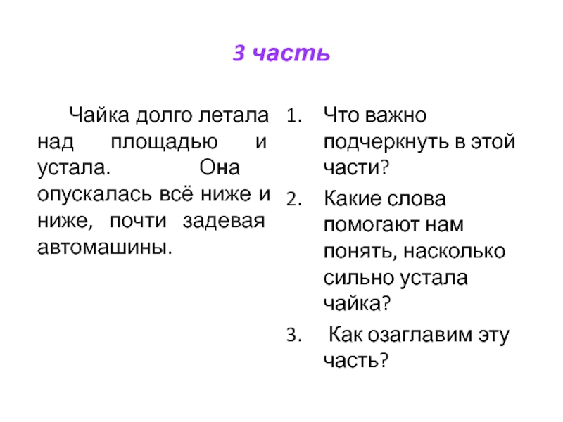 Какие слова помогают нам понять, насколько сильно устала чайка?