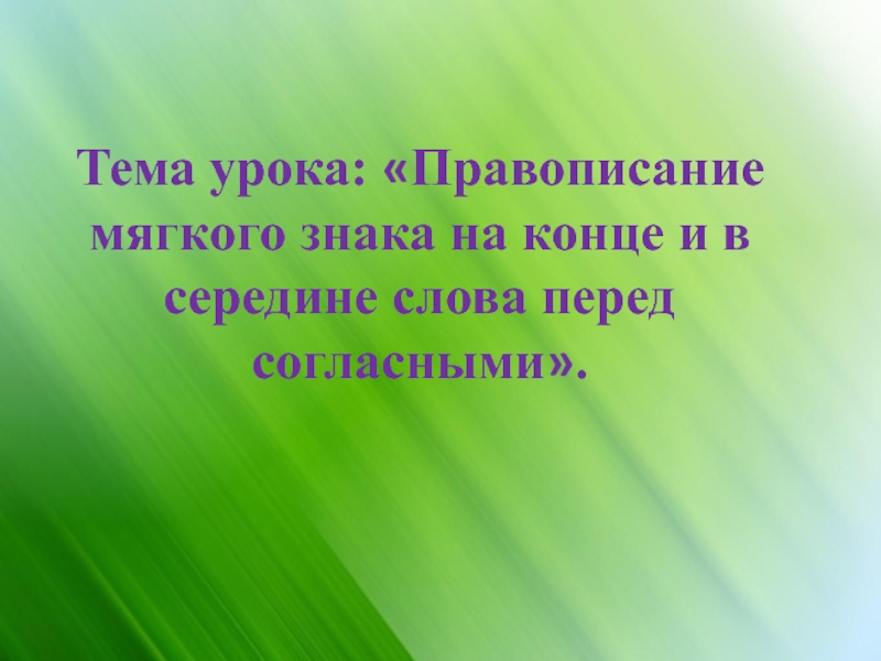 Тема урока: «Правописание мягкого знака на конце и в середине слова перед согласными».