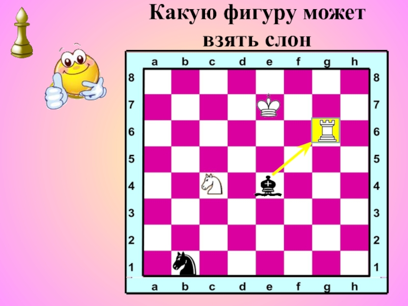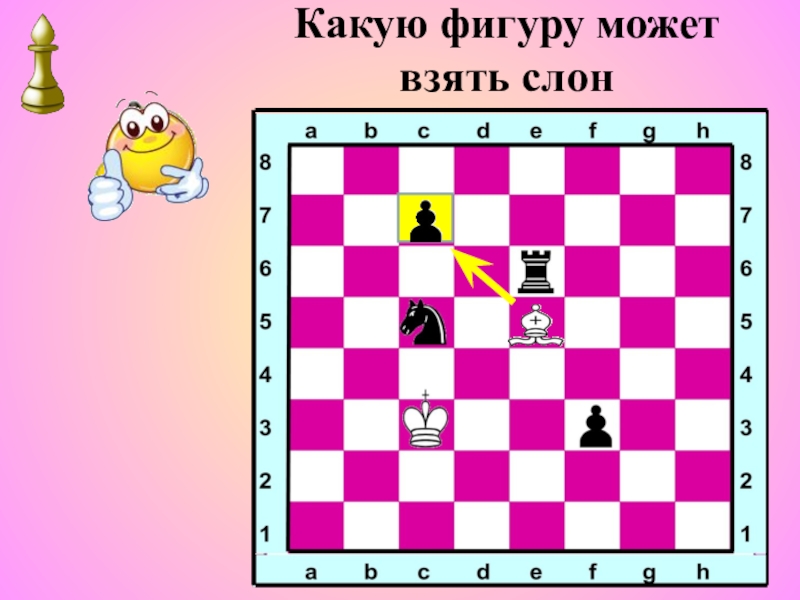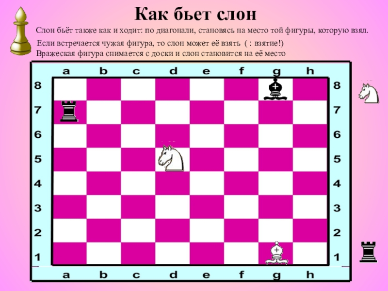 Вражеская фигура снимается с доски и слон становится на её место