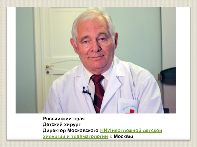 Российский врачДетский хирургДиректор Московского НИИ неотложной детской хирургии и травматологии г. Москвы