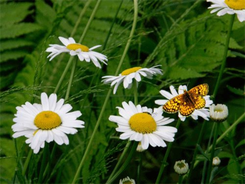 Белые ромашки с бабочкой.