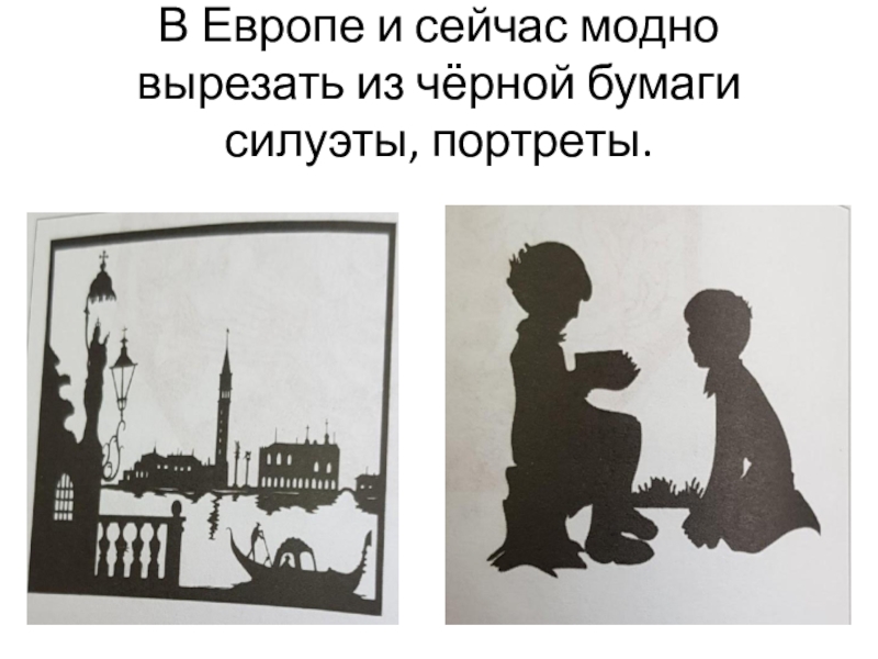 Слайд 21В Европе и сейчас модно вырезать из чёрной бумаги силуэты, портреты.