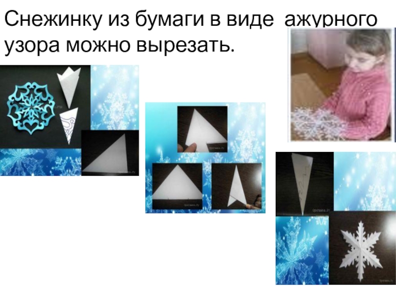 Слайд 18Снежинку из бумаги в виде ажурного узора можно вырезать.