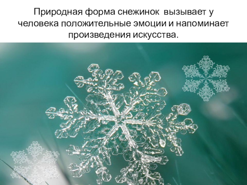 Слайд 8Природная форма снежинок вызывает у человека положительные эмоции и напоминает произведения