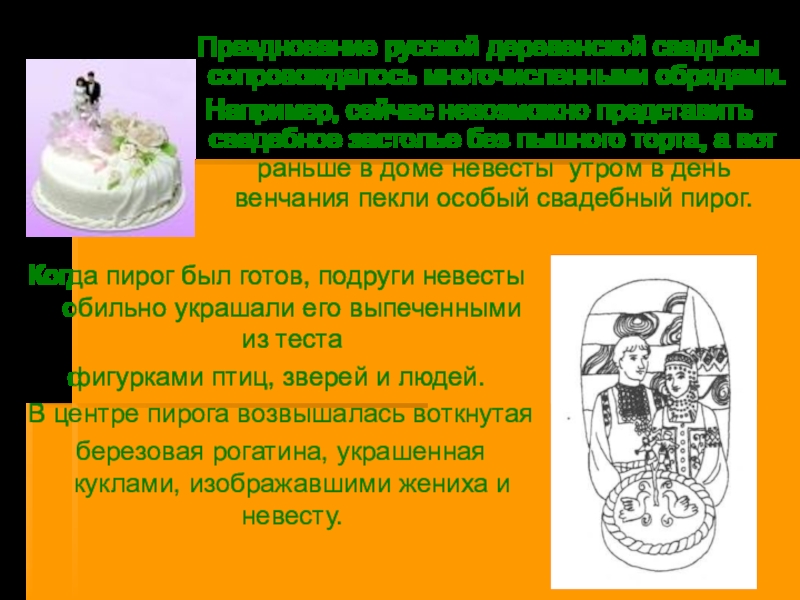 Когда пирог был готов, подруги невесты обильно украшали его выпеченными из теста