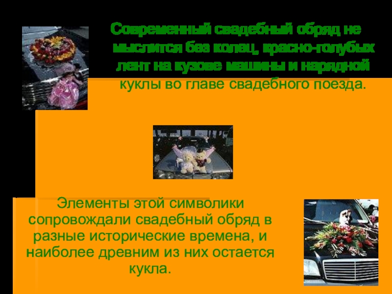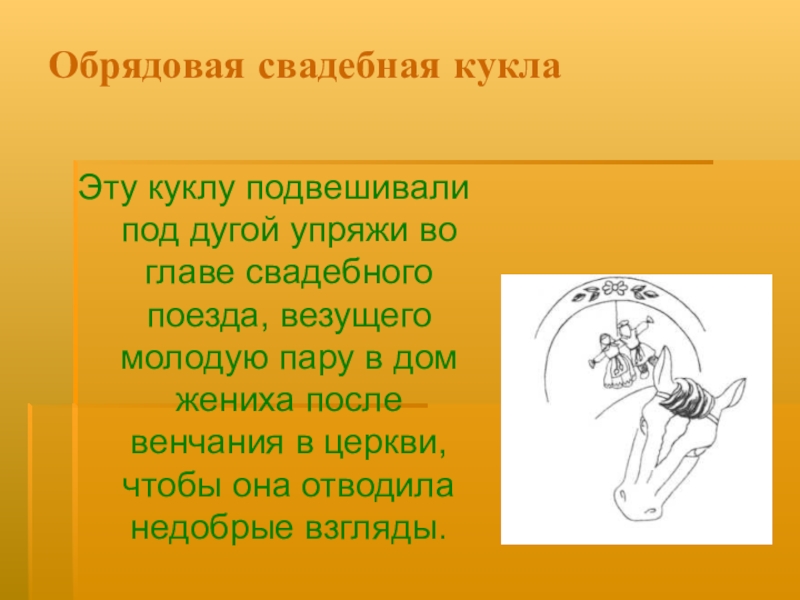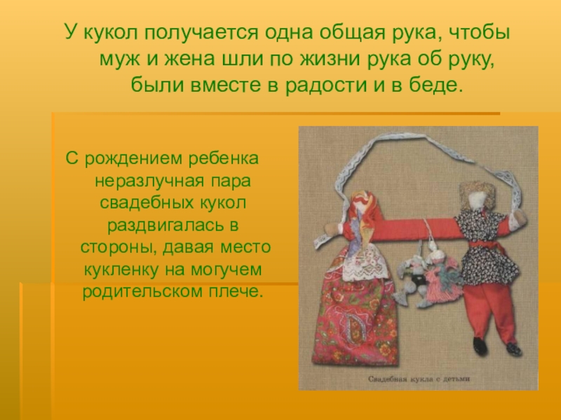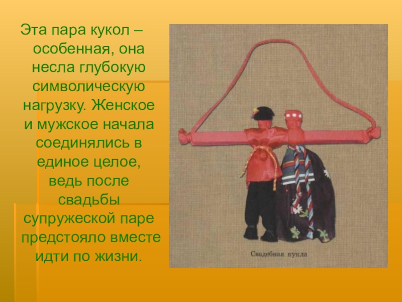Элементы этой символики сопровождали свадебный обряд в разные исторические времена, и наиболее древним из них остается кукла.