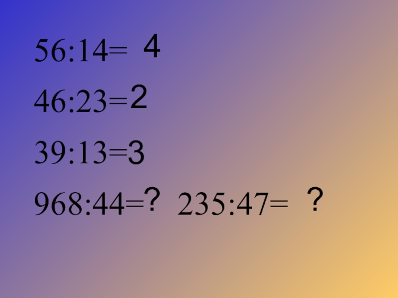 56:14=  46:23=   39:13=968:44=  235:47=423??