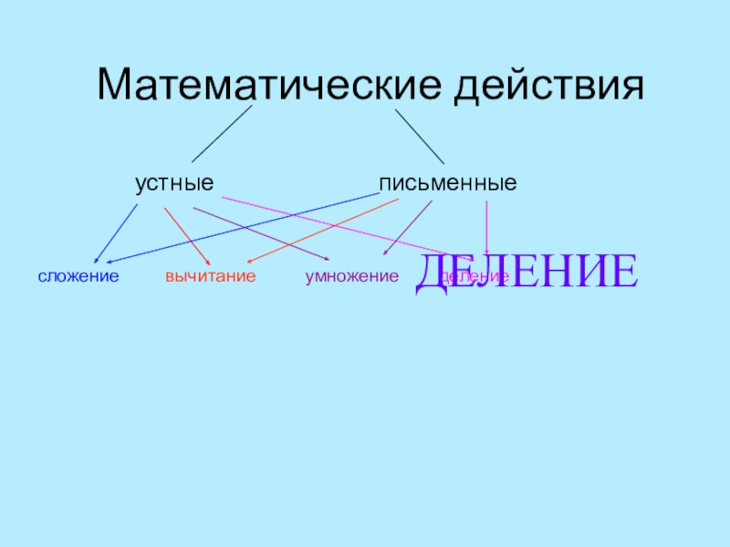 Математические действияустныеписьменныесложениевычитаниеумножениеделениеДЕЛЕНИЕ