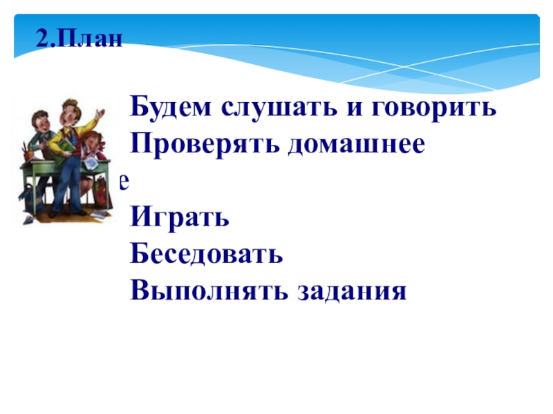 2.План       Будем слушать и говорить