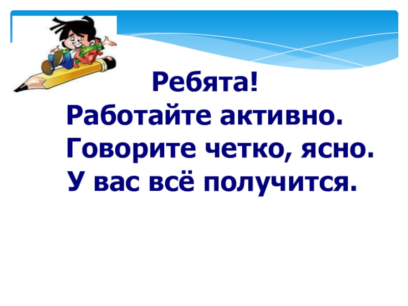 Слайд 3Ребята! Работайте активно. Говорите четко, ясно. У вас всё получится.