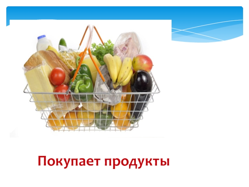 Слайд 20 Покупает продукты