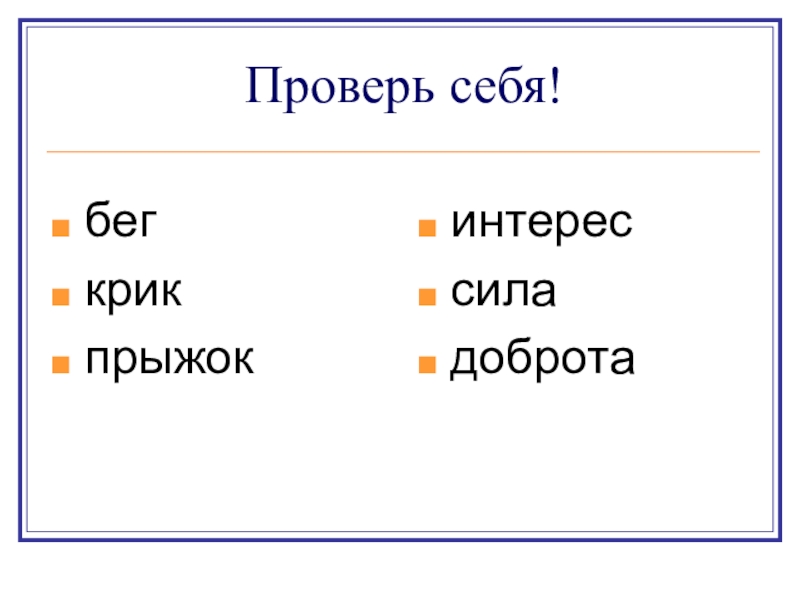 Проверь себя!бегкрикпрыжокинтерессиладоброта