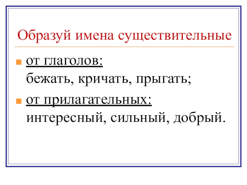 Образуй имена существительныеот глаголов:            бежать, кричать,