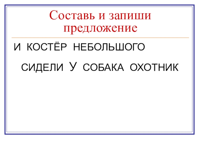 Составь и запиши предложениеИ КОСТЁР НЕБОЛЬШОГО  СИДЕЛИ У СОБАКА ОХОТНИК