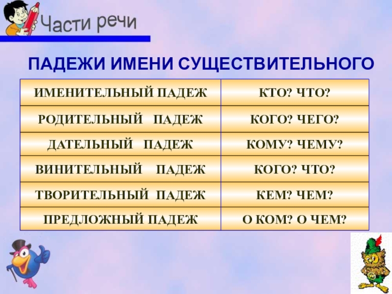 ПАДЕЖИ ИМЕНИ СУЩЕСТВИТЕЛЬНОГО