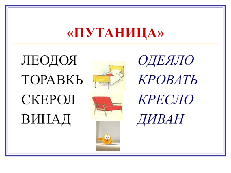 «ПУТАНИЦА»ЛЕОДОЯТОРАВКЬСКЕРОЛВИНАДОДЕЯЛОКРОВАТЬКРЕСЛОДИВАН