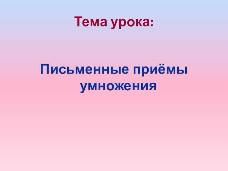 Урок математики в 4 классе Тема: «Письменные приёмы умножения»