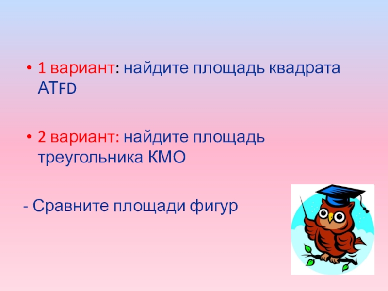 Слайд 231 вариант: найдите площадь квадрата АТFD