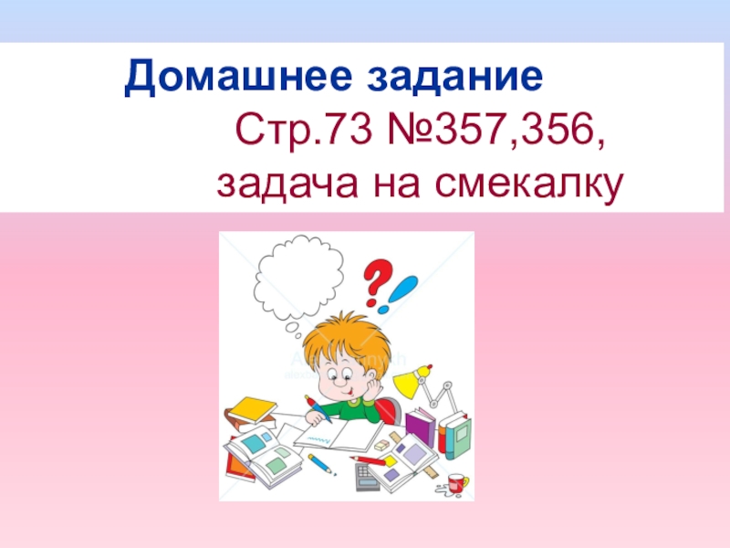 Домашнее заданиеСтр.73 №357,356,задача на смекалку