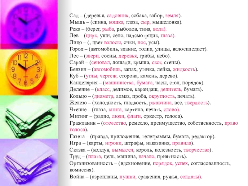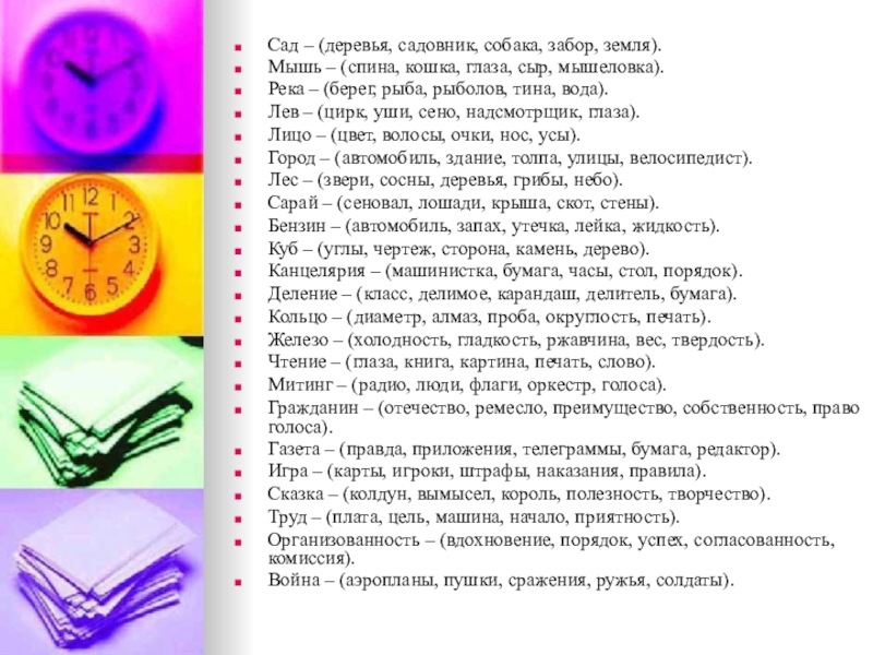Слайд 9Сад – (деревья, садовник, собака, забор, земля).