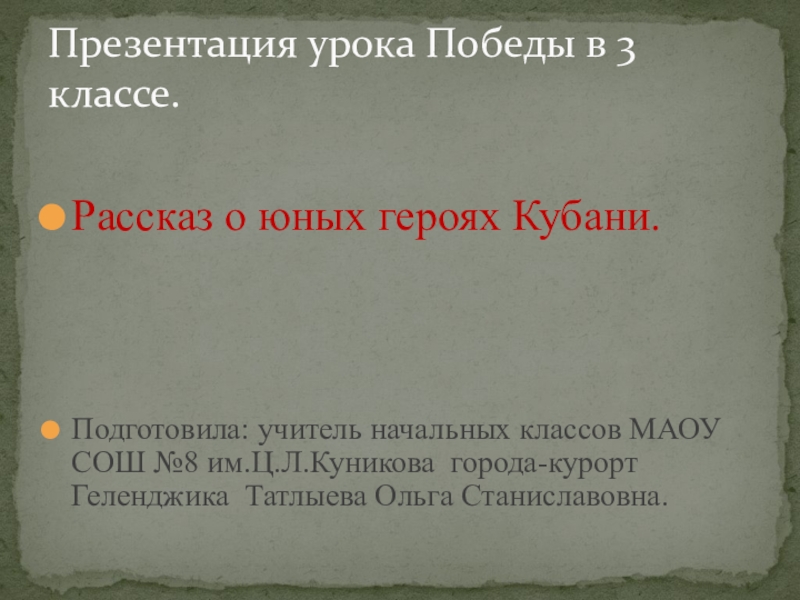 Презентация урока Победы в 3 классе.