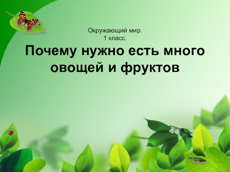 Слайд 1Окружающий мир. 1 класс. Почему нужно есть много овощей и фруктов